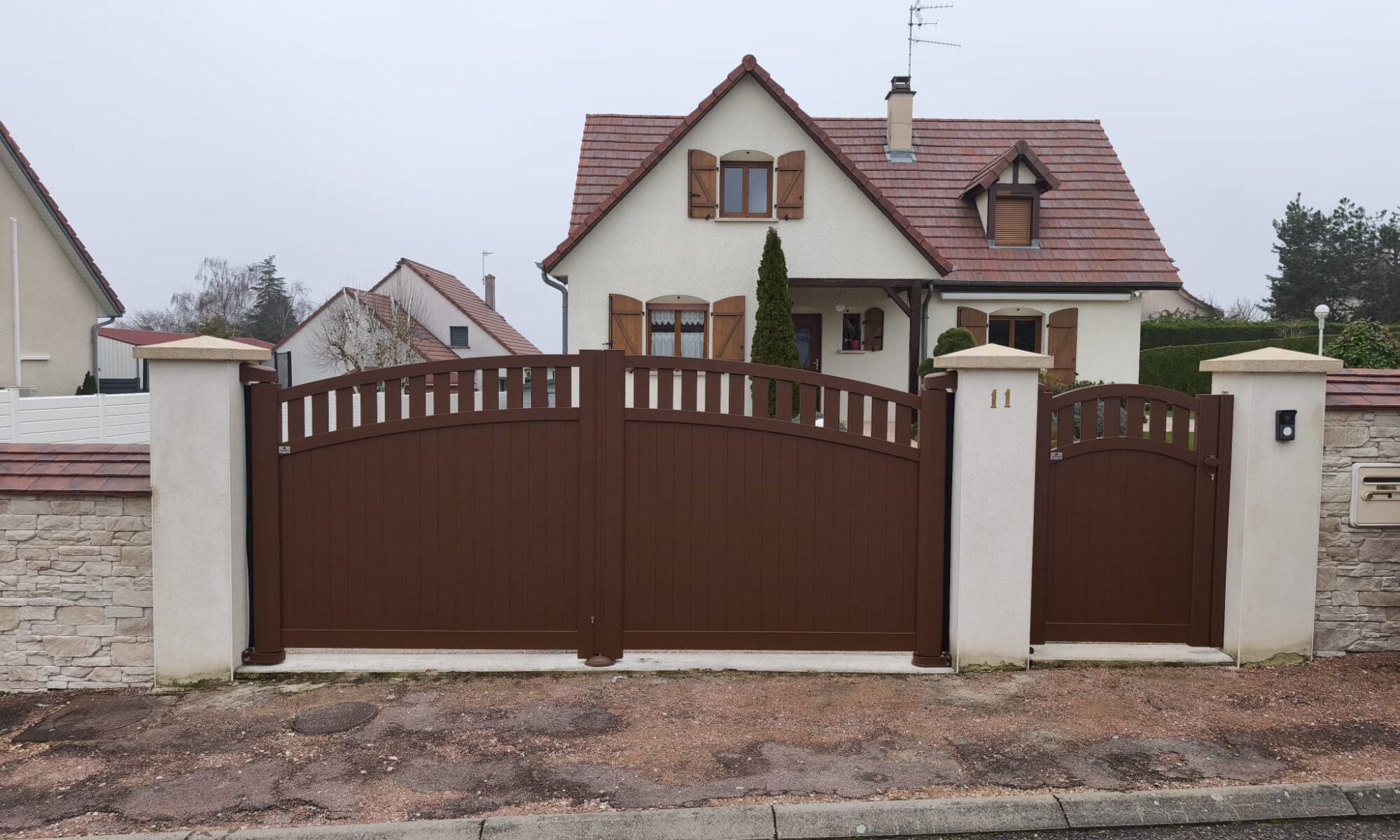 Le « faux pas » chromatique. Pour ce projet, l’enjeu était de taille : marier la modernité d’un portail neuf avec l’âme d’une maison de caractère sans rompre son équilibre. Nos équipes ont dû redoubler d’efforts et d’expertise pour trouver ce point de rencontre idéal entre matière et couleur. Mission accomplie : le résultat est une symbiose parfaite.